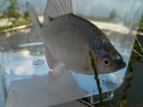 タナゴを始めてから初めての婚姻色雄カネ。一匹だけだったが上がった瞬間は言葉も出なかった。(マジっす)