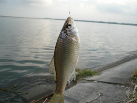 した。途中風裏の湖岸でやってみたがオオタナゴ、モツゴがかかるだけですぐ移動、河口に向かう。