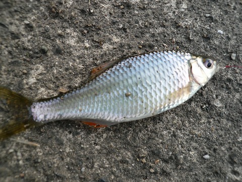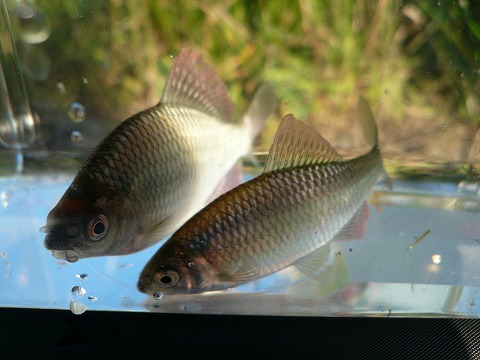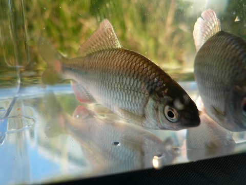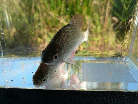 浮きが沖に引っ張られる。もしやと思ったが久しぶりの雌ヤリタナゴ。