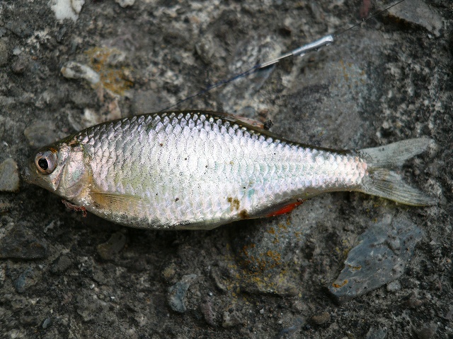 雄だがほとんど色が出ていません。下の水路ではこんなのが無数に群れていた。