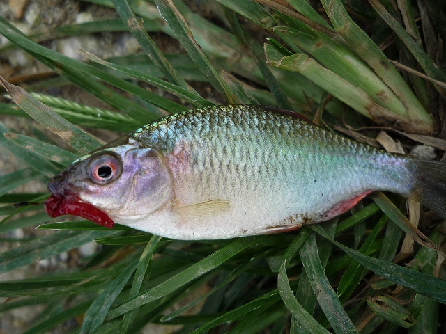 いつもの餌場で掛けた当歳カネヒラ。この固体はかなりの小型。でもしっかりと婚姻色が出ている。
