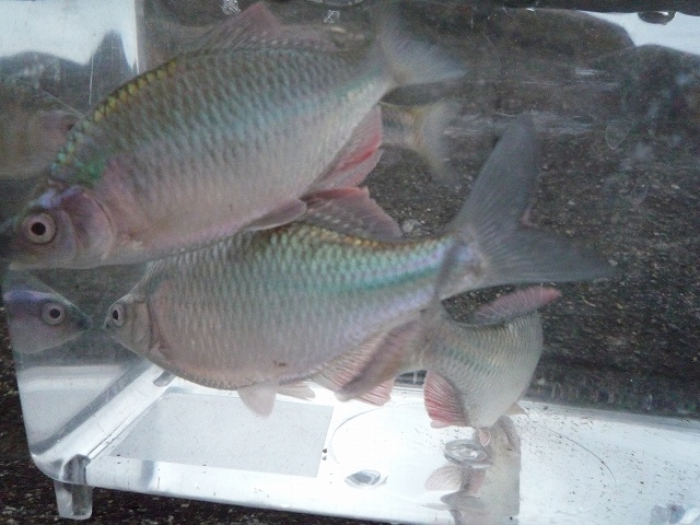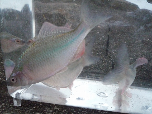 しかも、ヒレがボロボロで縄張り争いに参加していたことが伺える。赤いものは赤虫である。