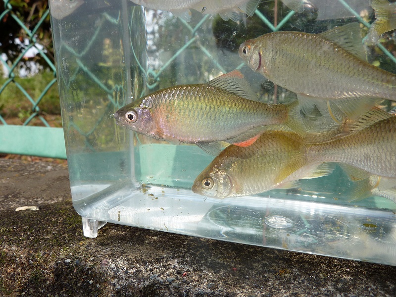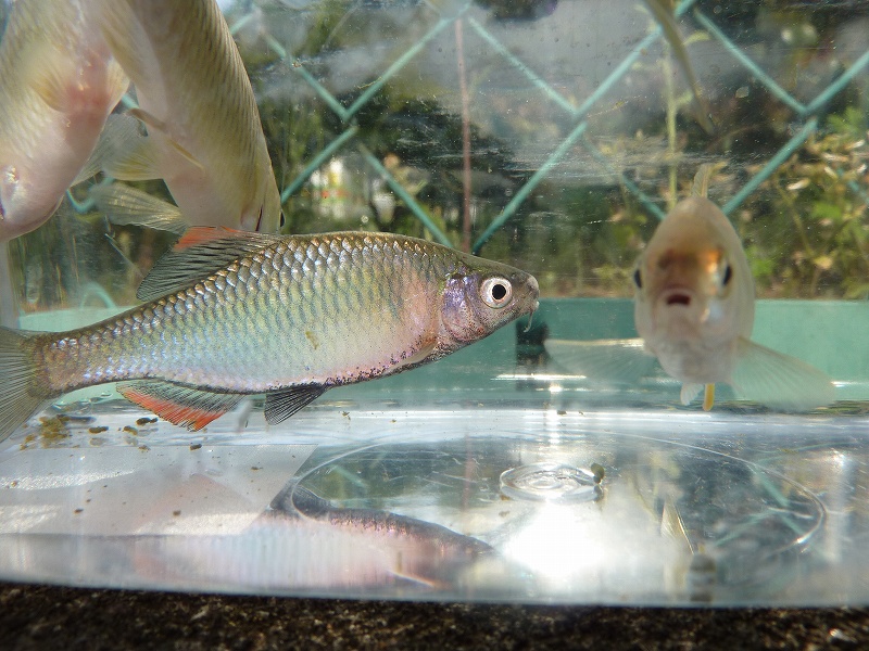 なります。でもさらに近寄ると全員退散します。あらら。 で、2.4m硬調の竿で赤虫、玉グルを使い分け、そっと近づき雄ヤリタナゴの前方に流します。
