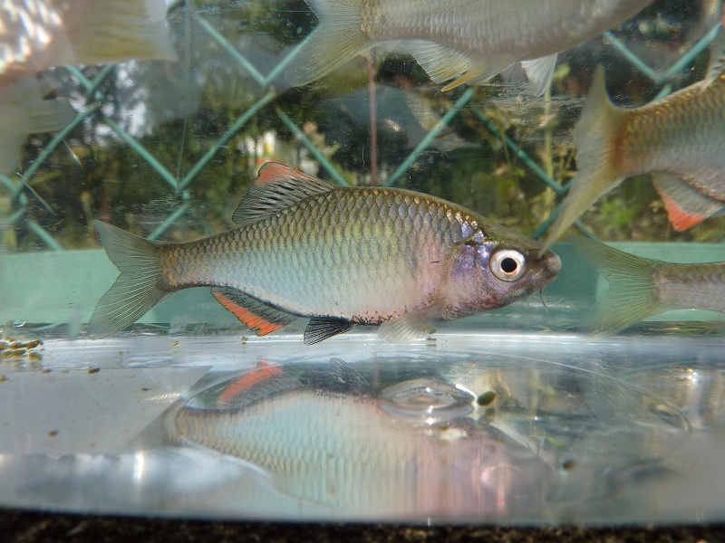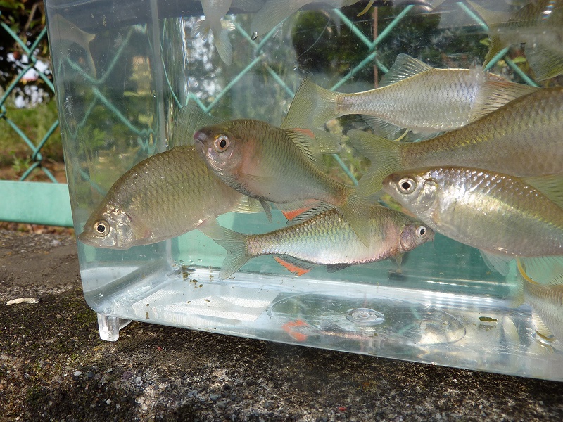集合写真。雄雌ヤリタナゴ。なぜかカネヒラも(目が大っきく細長タイプ、目が小さい体高ある霞水系の琵琶湖型とは異なる)。