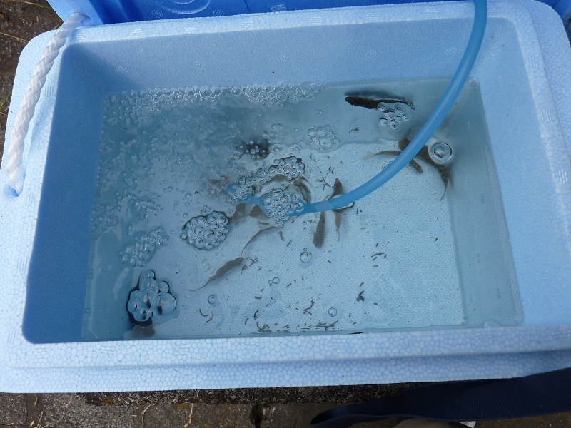 またまたスチロール生簀君大活躍です。日陰に置けばほとんど水温は上がらない。