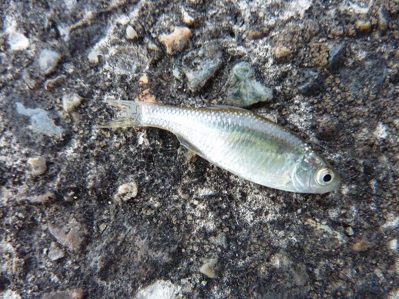 ようやく1匹釣れた。しかも、3cm弱。小さい。川平とは違い鱗が綺麗である。